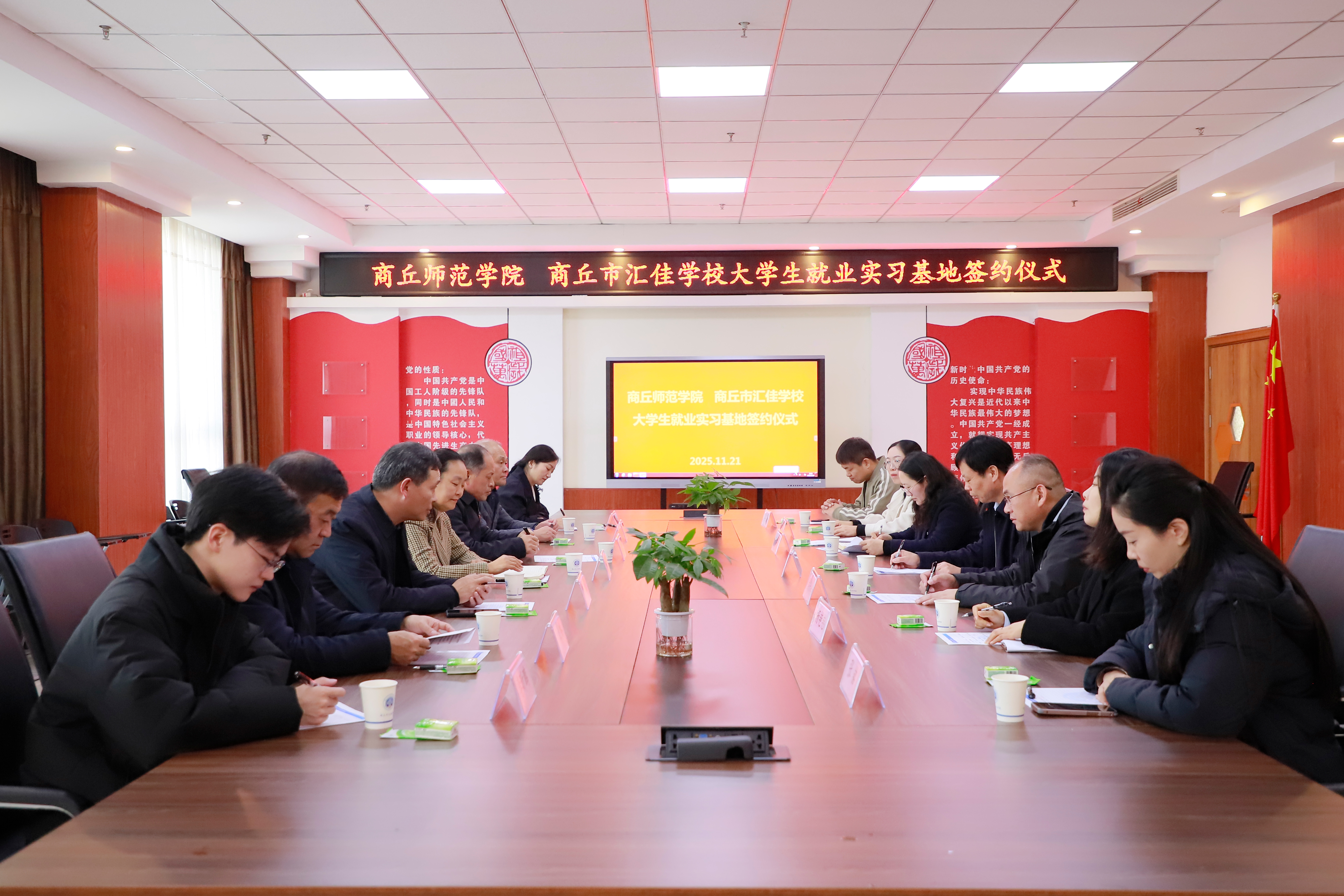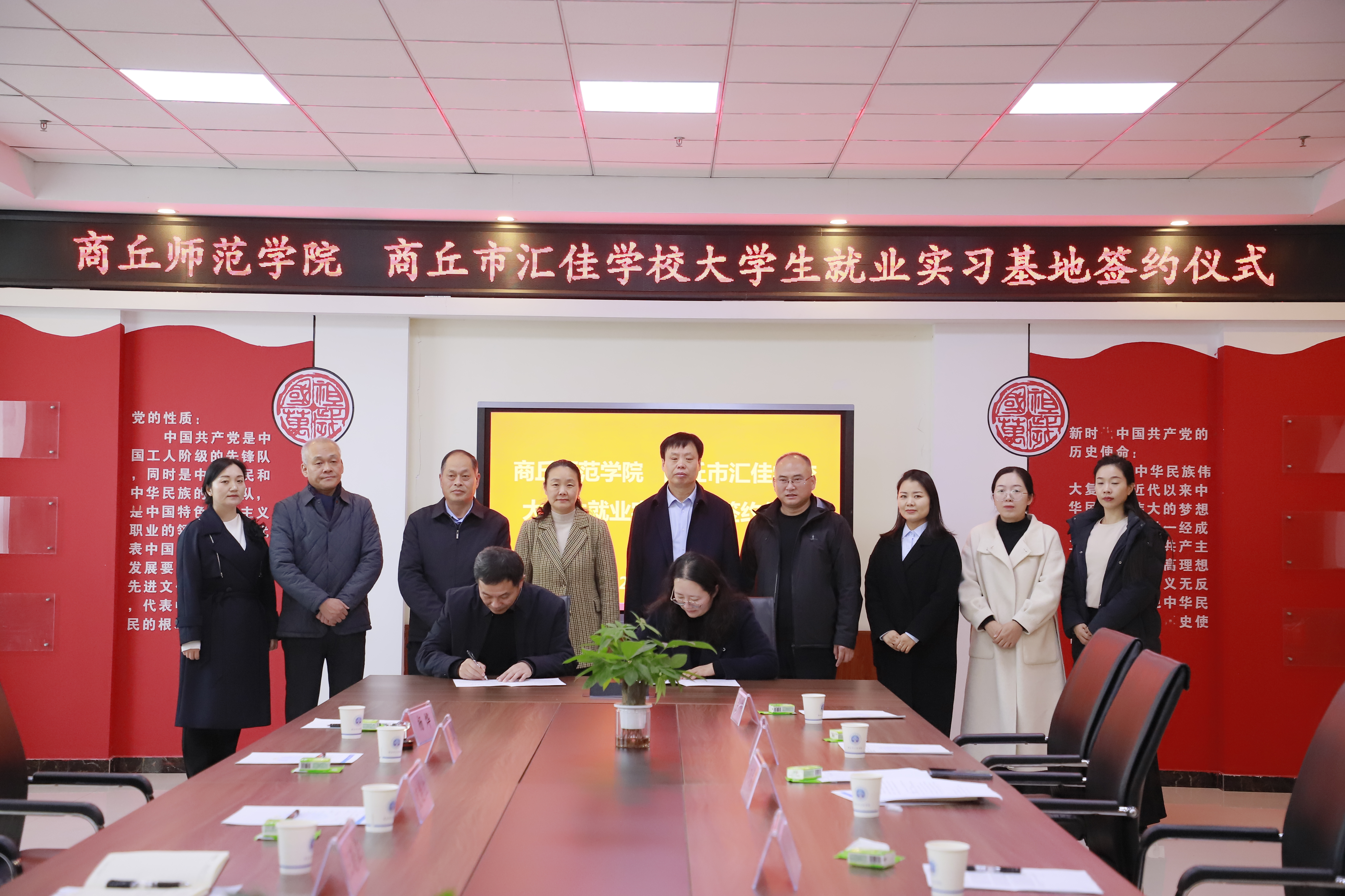 座谈结束后,双方共同签署了《商丘师范学院大学生就业实习基地协议书》,并举行了“大学生就业实习基地”授牌仪式。