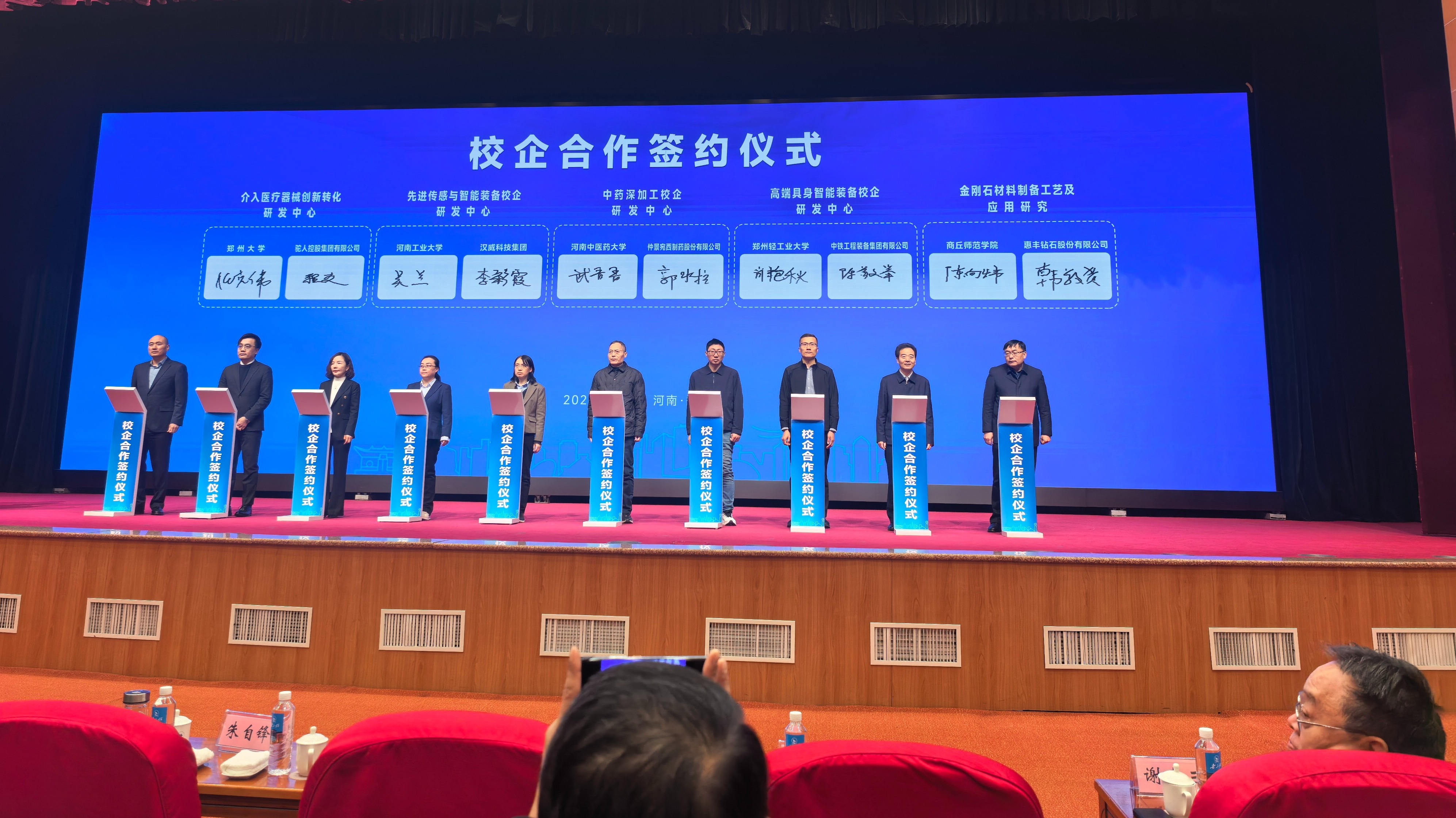 会上,陈向炜代表学校与惠丰钻石股份有限公司签署“金刚石材料制备工艺及应用研究”合作协议。惠丰钻石股份有限公司是超硬材料产业龙头企业、国内金刚石微粉领域领军企业、国家级专精特新“小巨人”企业,近几年我校与惠丰钻石在共建校企研发中心、联合开展科技创新、共建产业研究院、人才共享共用等方面开展了深入合作,成效显著。此次签约,更是我校服务超硬材料产业发展、助力培育新质生产力的又一重要体现。