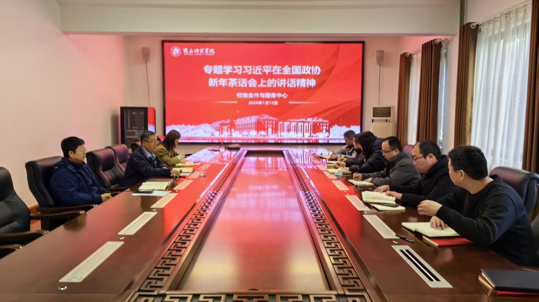 1月12日,校地合作与服务中心在归德楼102会议室开展政治理论学习,专题学习习近平总书记在全国政协新年茶话会上的讲话精神。中心全体教职工参加学习,党支部书记、中心主任陈华主持。