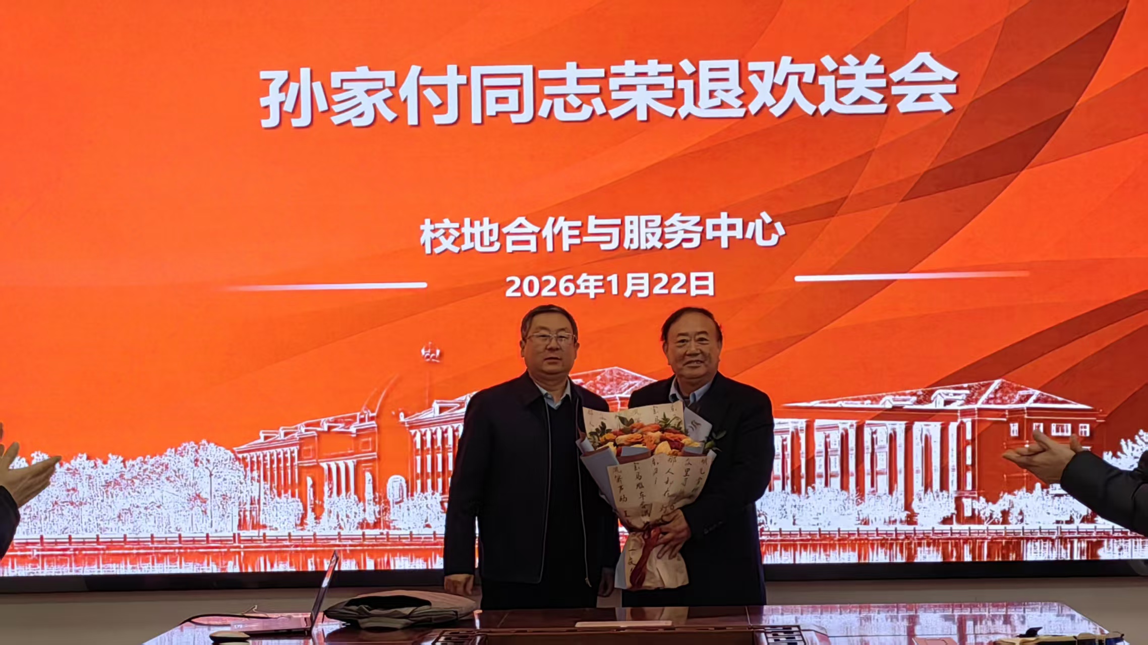 1月22日,校地合作与服务中心在归德楼102会议室举行退休教师欢送会。中心全体教职工参加,党支部书记、中心主任陈华主持。