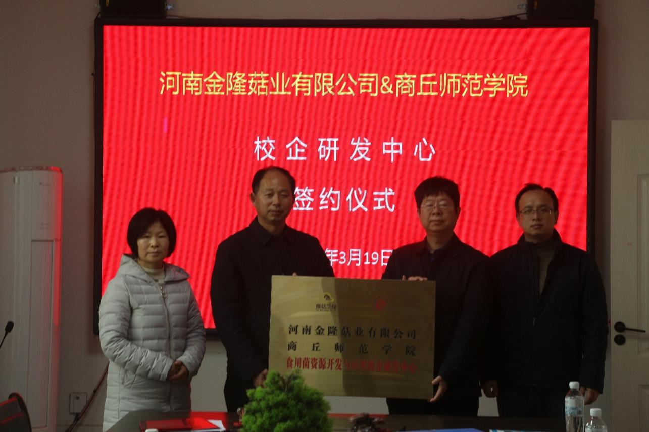 3月19日,我校与河南金隆菇业有限公司举行“食用菌资源开发与应用校企研发中心”签约授牌仪式。校地合作与服务中心副主任杨广礼与河南金隆菇业有限公司总裁利金站出席签约仪式。